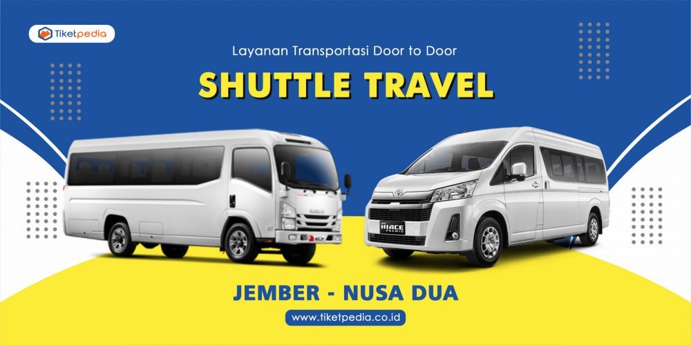 Tiketpedia melayani jasa transportasi Shuttle Travel Jember ke Nusa Dua (Bali) atau arah sebaliknya. Tentunya akan lebih mudah dan otomatis akan dijemput dan diantar ke alamat tujuan (door to door), Dapatkan harga travel murah untuk kelas travel reguler dengan jam berangkat pagi siang sore malam. kami juga melayani pemesanan tiket travel baik perorangan maupun charter rombongan.